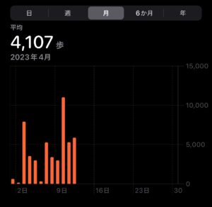 対して今現在4月の平均(12日時点)は4107歩でした。